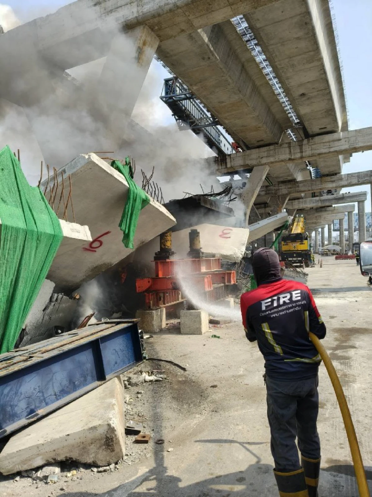 เวลา 11.00 น. เกิดอะไรขึ้น? เกิดเหตุด่วนอีกแล้ว ไฟไหม้ซากเครน ตรงจุดเดิม เครนถล่มพระราม 2 จ.สมุทรสาคร เจ้าหน้าที่กู้ภัย เทศบาลตำบลท่าจีน ระดมฉีดน้ำสกัดวุ่น หวั่นซ้ำรอยอุบัติเหตุใหญ่