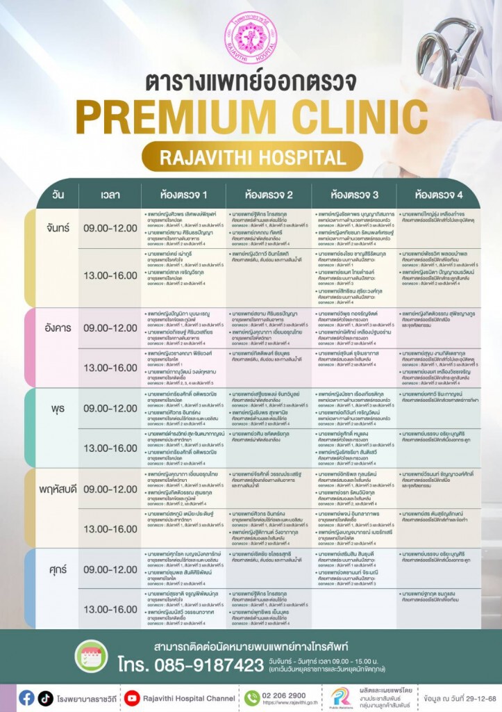ตารางแพทย์ออกตรวจ คลินิกพิเศษ รพ.ราชวิถี