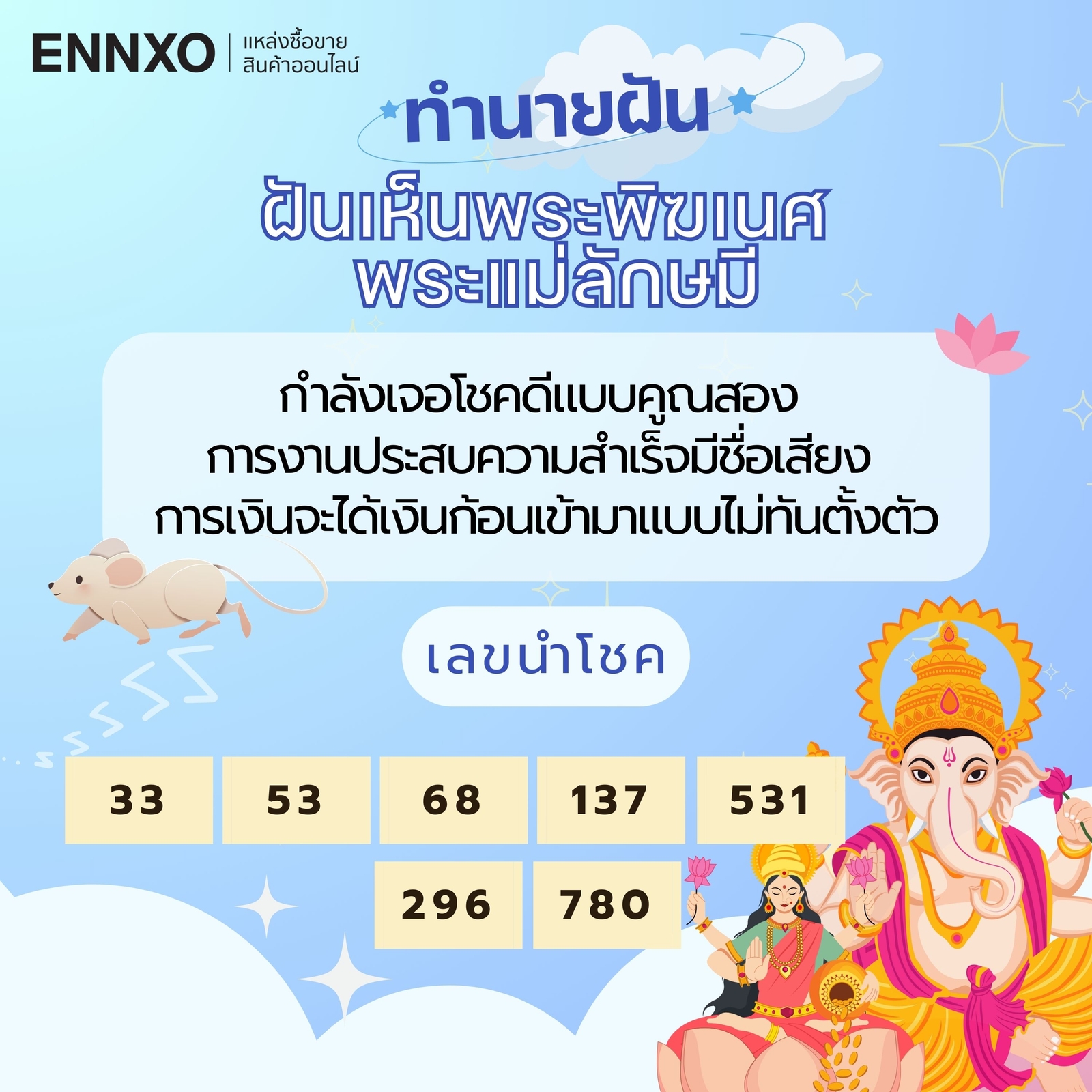 - ฝันเห็นพระพิฆเนศ พระแม่ลักษมี เลขเด็ด สามตัว : 137, 531, 296, 780