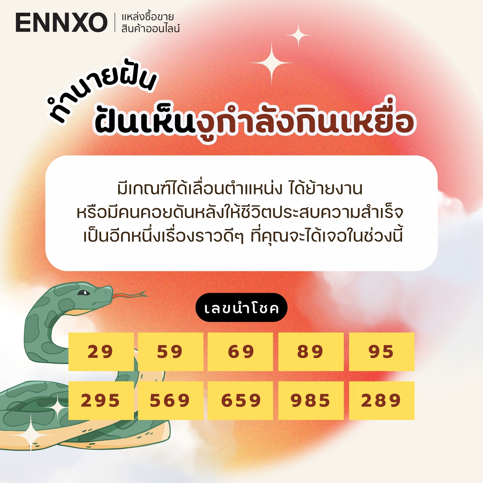 - เลขเด็ดฝันว่าเห็นงูใหญ่กําลังกินเหยื่อ สามตัว: 295, 569, 659, 985, 289