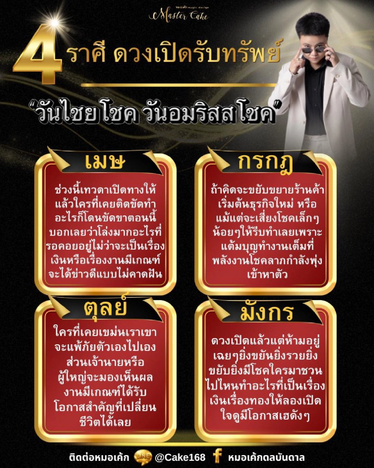 ดวงกำลังเปิด! หมอเค้กดลบันดาล ชี้ 4 ราศีโชคมาแรง รับพลัง “วันไชยโชค–วันอมริสสโชค” เทวดาเปิดทาง เงิน งาน โอกาสใหม่ๆ วิ่งเข้าหา