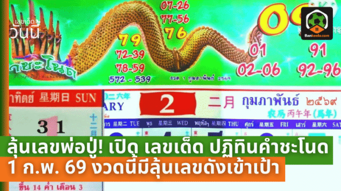 🔢 เจาะเลขปฏิทินคำชะโนด งวด 1 กุมภาพันธ์ 2569