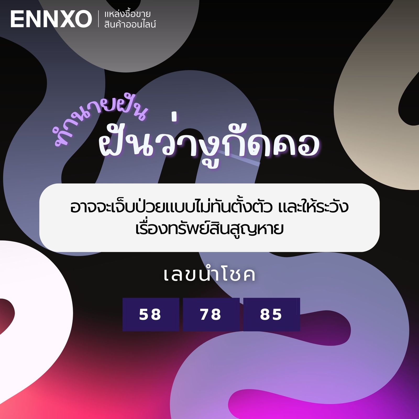 เลขเด็ดนำโชคฝันว่างูกัดคอ: 58, 78, 85