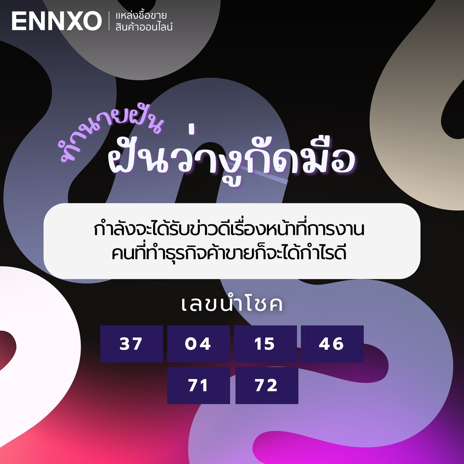 เลขเด็ดนำโชคฝันว่างูกัดมือ: 37, 04, 15, 46, 71, 72