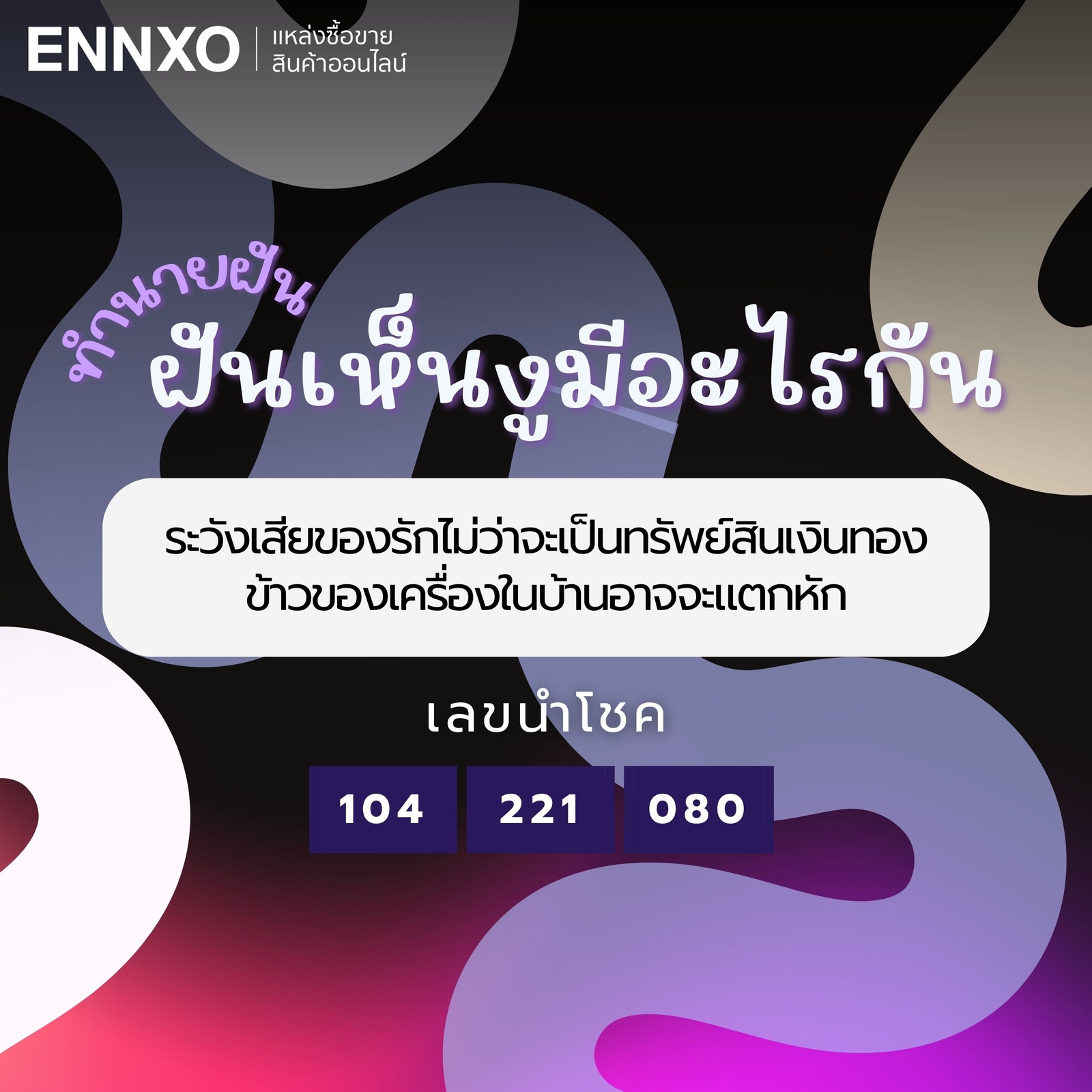 ฝันเห็นงูมีอะไรกันเลขเด็ด 3 ตัว: 104, 221, 080