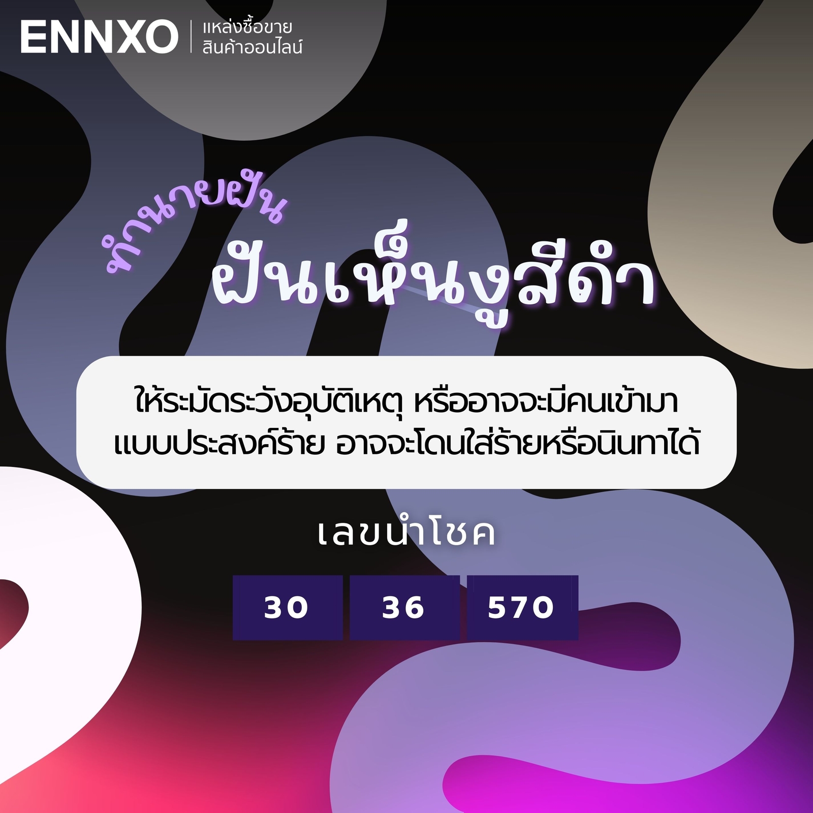 เลขเด็ดนำโชคฝันเห็นงูสีดำ: 30, 36