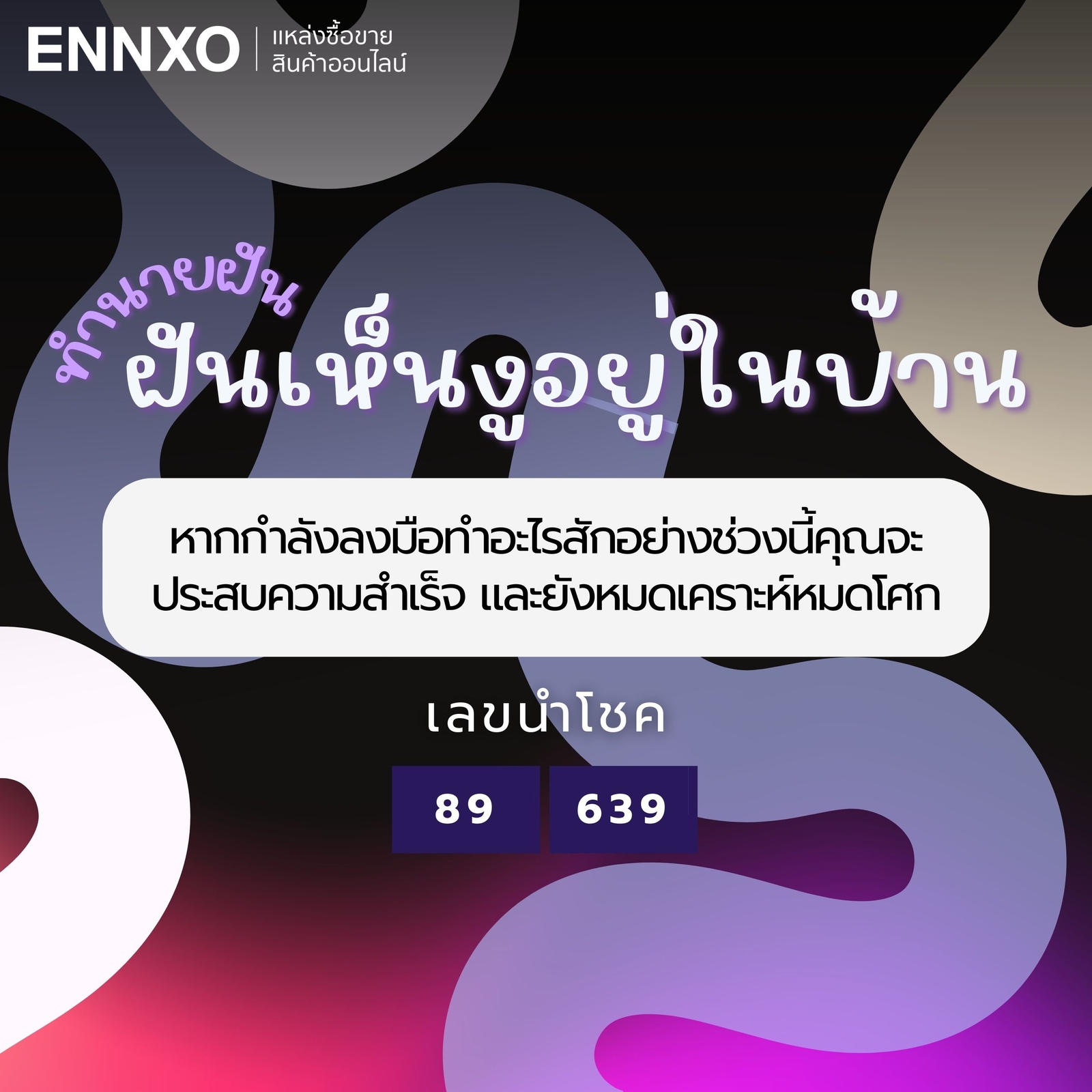 ฝันเห็นงูอยู่ในบ้านเลขเด็ด 3 ตัว: 639