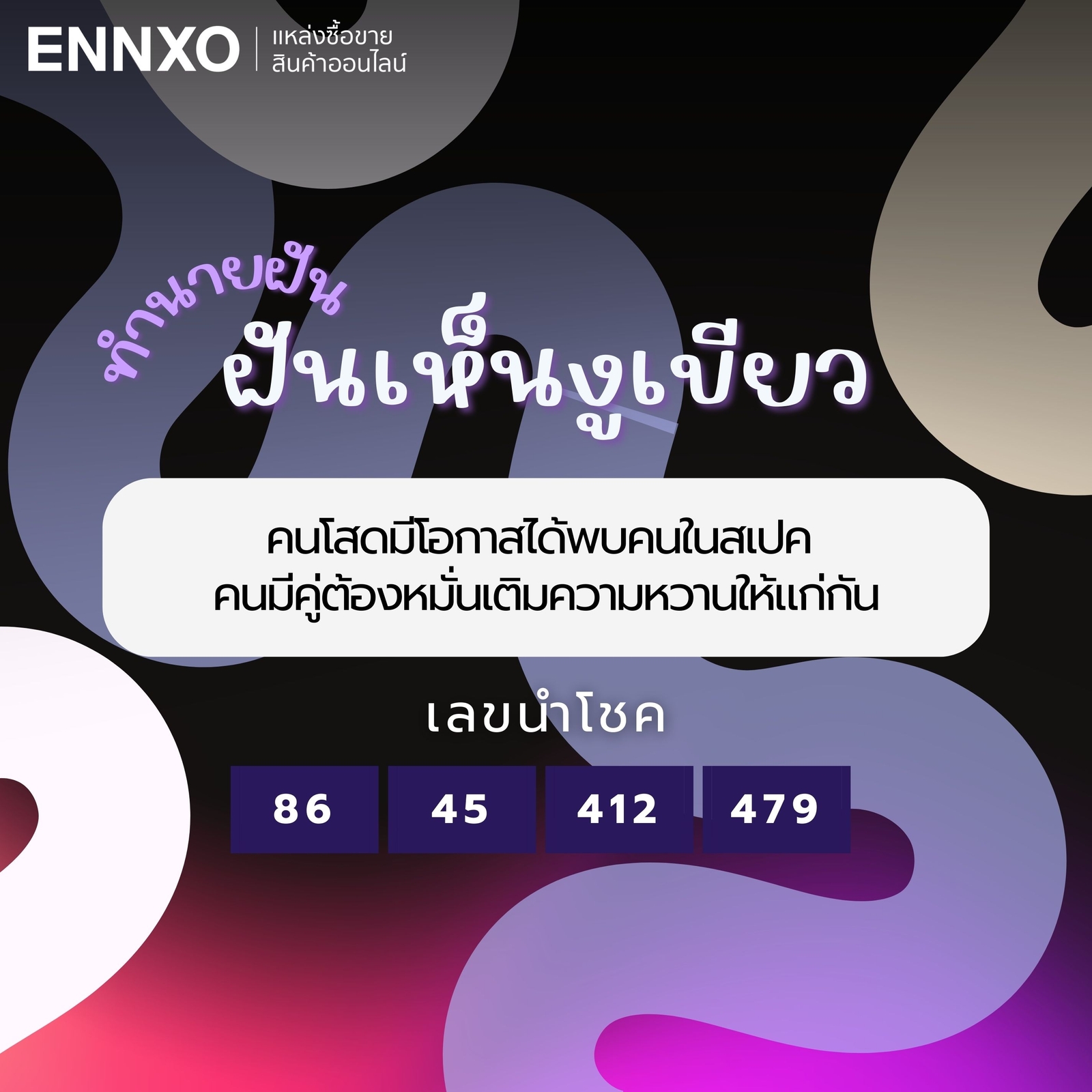 ใครที่นอนแล้วบังเอิญฝันเห็นงูแล้วอยากรู้ความหมายคืออะไร ฝันเห็นงูนั้นเป็นฝันดีหรือฝันร้าย อยากรู้ความหมายที่แท้จริง เปิดคำทำนายฝันเห็นงูแม่นๆ ฝันเห็นงู 1 ตัว, ฝันเห็นงูตาย มีความหมายถึงอะไร แล้วยังนำการฝันเห็นงู ตีเลขเด็ดแม่นๆ “5, 6, 9” ไปลุ้นถูกรางวัลได้อีกด้วย วันนี้ ENNXO มัดรวมคำทำนายฝันเกี่ยวกับการฝันเห็นงูทั้งหมด พร้อมแล้วไปติดตามกันได้เลย