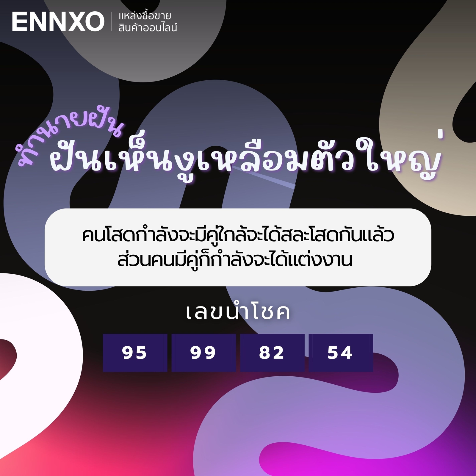 เลขเด็ดนำโชคฝันเห็นงูเหลือมตัวใหญ่: 95, 99, 82, 54