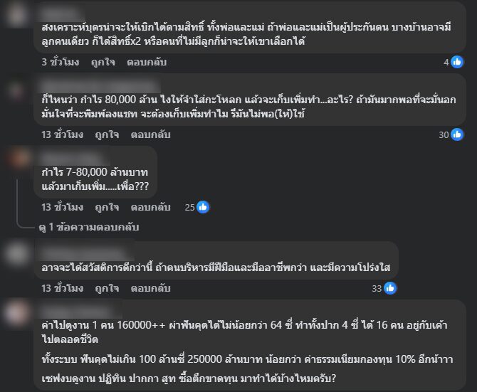 อย่างไรก็ตาม ภายหลังจากเพจสำนักงานประกันสังคม ชี้แจงกรณีดังกล่าวออกไป ต่างมีผู้เข้ามาแสดงความคิดเห็นภายใต้โพสต์ดังกล่าวเป็นจำนวนมาก ดังต่อไปนี้