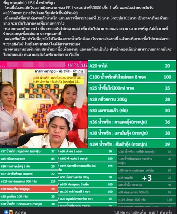 - ไลฟ์สดขายน้ำพริกตัวเองในราคาส่ง ตัดราคาพ่อค้าแม่ค้าที่รับไปขายต่อ