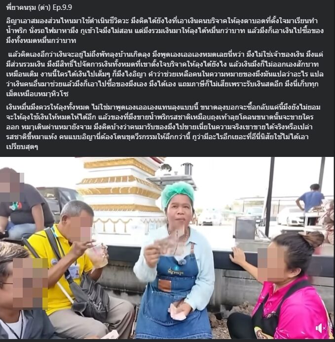 - ในคลิปมีการบอกตอนนับเงินบอกน้องว่า หนูเอาไปซื้อน้ำพริกพี่ญาให้หมดเลยนะ