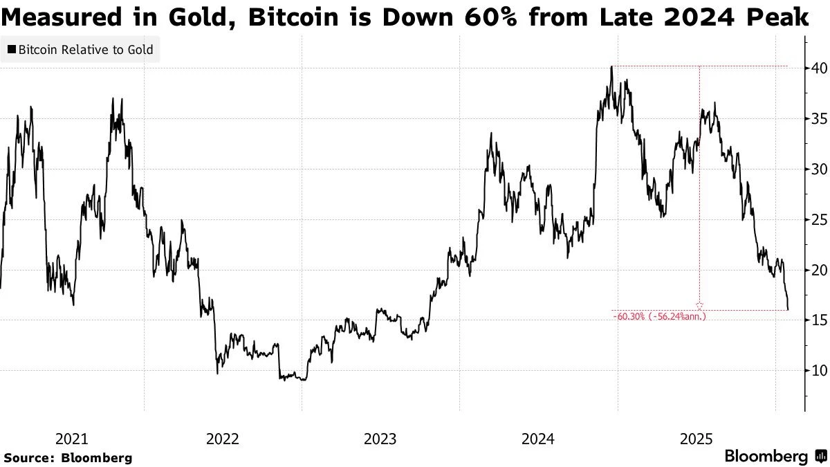 หากเราจะวัดว่า Bitcoin สามารถทำหน้าที่แทนทองคำได้จริงหรือไม่ วิธีที่แม่นยำที่สุดคือการเทียบมูลค่ากันโดยตรง มูลค่าของ Bitcoin ลดลงถึง 60% จากจุดสูงสุดในช่วงปลายปี 2567