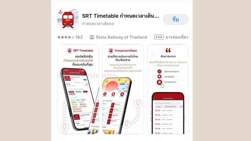 การรถไฟฯ อัพเดทแอปพลิเคชัน “SRT Timetable” V.3 ฟังก์ชั่นใหม่
