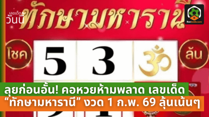 ที่มา : ลุยก่อนอั้น! คอหวยห้ามพลาด เลขเด็ด “ทักษามหารานี” งวด 1 ก.พ. 69 ลุ้นเน้นๆ เลขมาแรงน่าจับตา - บ้านกีฬา