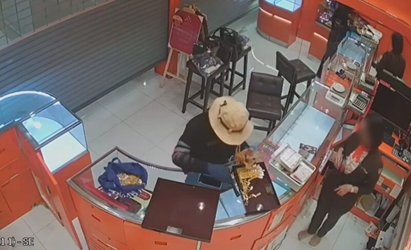 ภาพจากกล้องวงจรปิดภายในร้านทองขณะที่คนร้ายลงมือก่อเหตุ