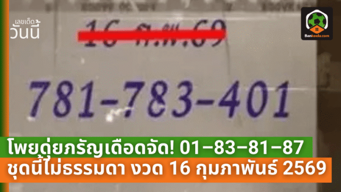 โพยดุ่ยภรัญเดือดจัด! 01–83–81–87 ชุดนี้ไม่ธรรมดา งวด 16 กุมภาพันธ์ 2569 ใครเล็งเลขอยู่ต้องอ่าน