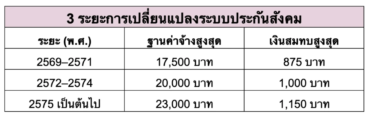 การเปลี่ยนแปลงครั้งนี้ไม่ได้จบแค่ปี 2569 แต่เป็นส่วนหนึ่งของโครงสร้าง 3 ระยะ ที่วางแผนไว้เพื่อให้ระบบประกันสังคมทันสมัยและสอดคล้องกับเศรษฐกิจไทยมากขึ้น ได้แก่