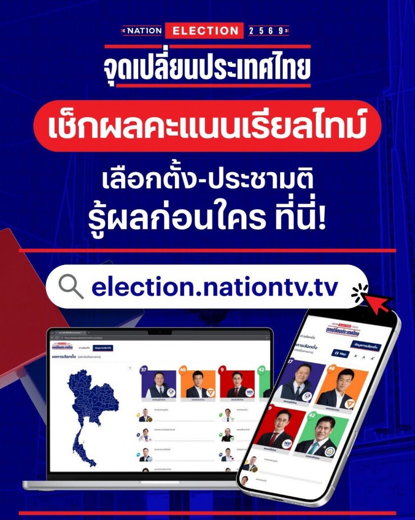 เนชั่น ชวนเกาะติดผลการนับคะแนนเลือกตั้ง 2569 แบบเรียลไทม์Real-time รู้ผลก่อนใครผ่านเว็บไซต์ election.nationtv.tv