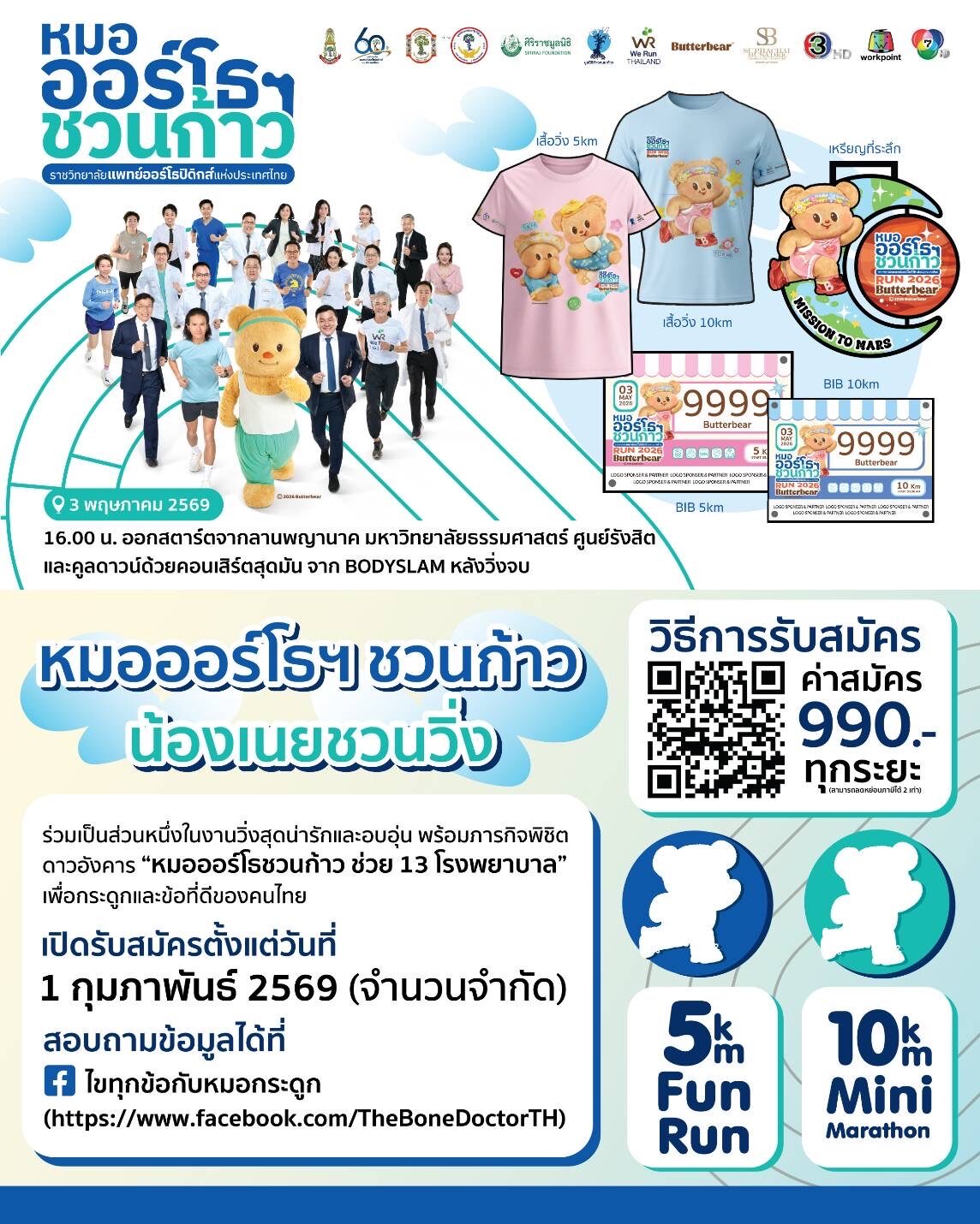 สำหรับใครที่อยากร่วมวิ่ง หรือร่วมบริจาค สามารถติดตามรายละเอียดได้ที่ Facebook : ราชวิทยาลัยแพทย์ออร์โธปิดิกส์แห่งประเทศไทย, Facebook : ไขทุกข้อกับหมอกระดูก และTikTok : ไขทุกข้อกับหมอกระดูก