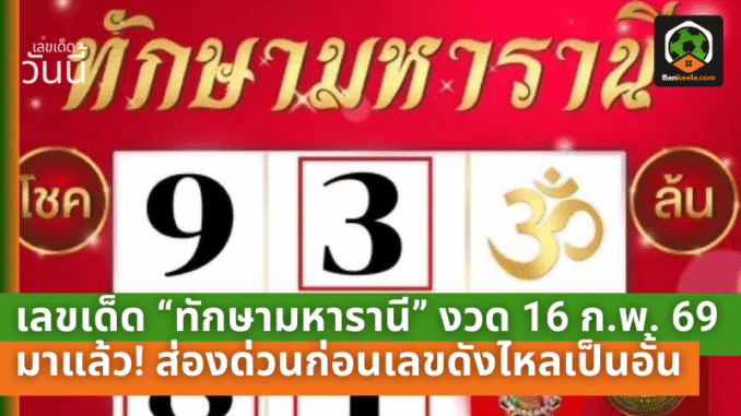 ที่มา : เลขเด็ด “ทักษามหารานี” งวด 16 ก.พ. 69 มาแล้ว! ส่องด่วนก่อนเลขดังไหลเป็นอั้น—คอหวยห้ามพลาด - บ้านกีฬา