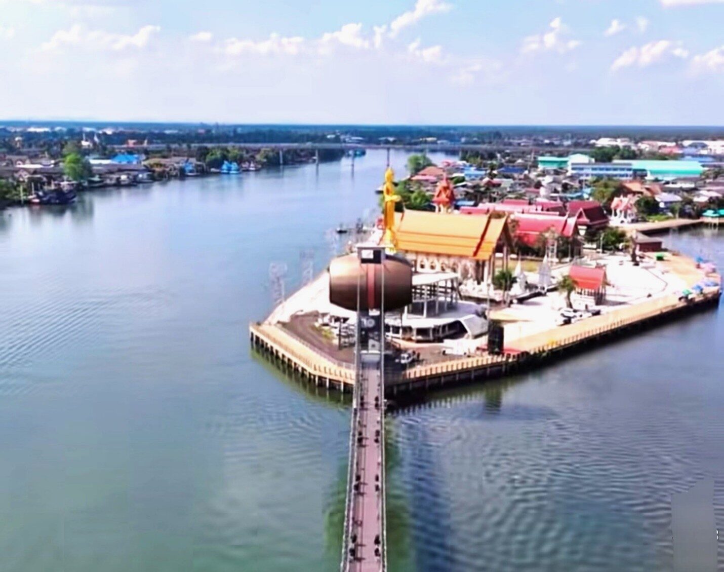 เส้นทางที่ 2 ชมสะพานแขวนไหว้พระวัดใหญ่แม่กลอง แลนด์มาร์คแห่งใหม่ ในตำบลแม่กลอง อำเภอเมือง จังหวัดสมุทรสงคราม จุดชมวิวแม่น้ำแม่กลอง มีจุดเชื่อมต่อเข้าไปสักการะสิ่งศักดิ์ภายในวัดใหญ่ ทั้ง “พระประธานและองค์พระพุทธรูปทรงเครื่อง” ในอุโบสถ กราบขอพร “หลวงพ่อองค์ดำ” พระพุทธรูปในหลวงรัชกาลที่ 9 ทรงโปรดฯ ถวายให้วัดใหญ่เมื่อครั้งทรงครองสิริราชสมบัตรครบ 50 ปี เมื่อปี 2539