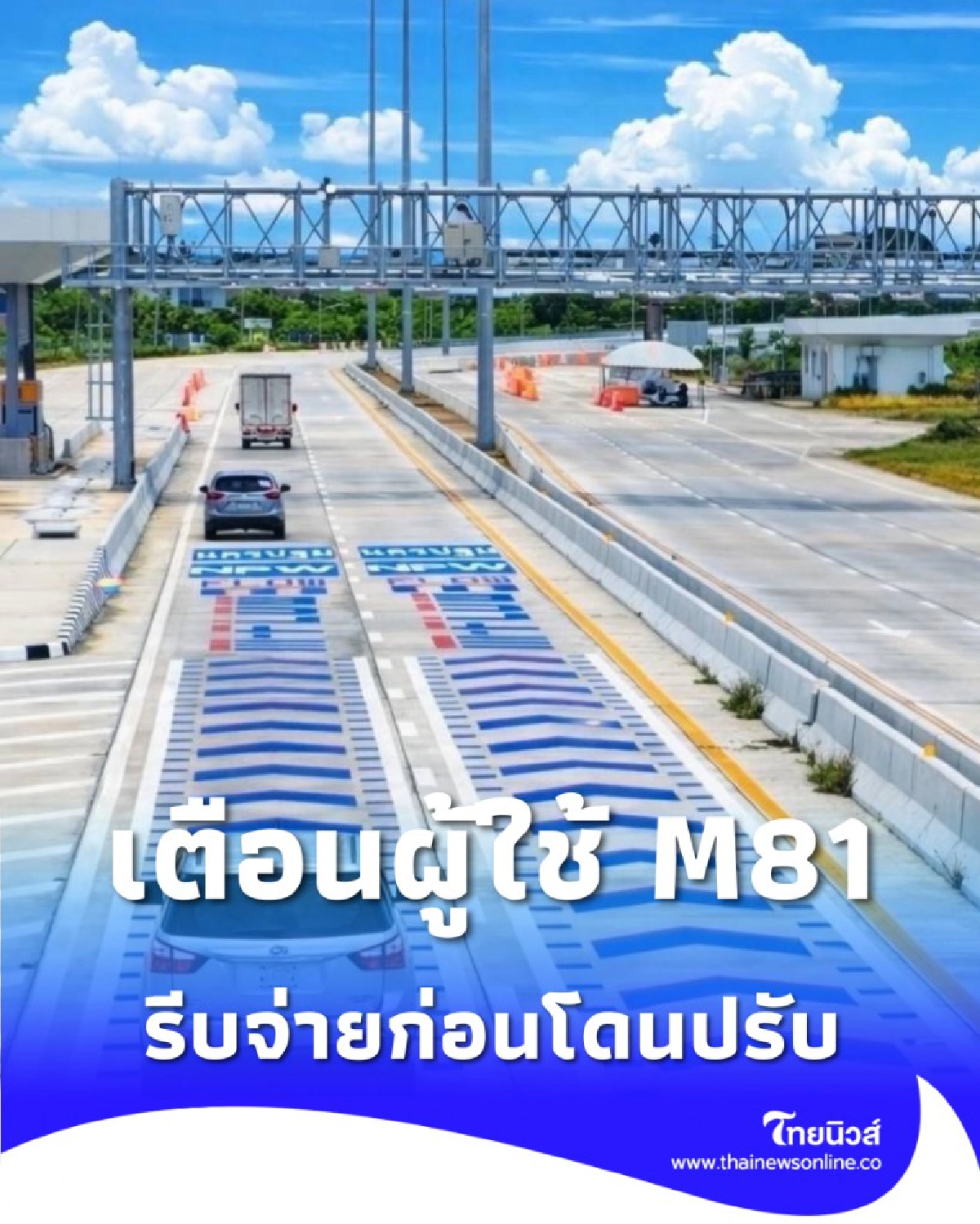 ที่มา : เตือนผู้ใช้ M81 บางใหญ่-กาญจน์ รีบจ่าย M-Flow ก่อนโดนค่าปรับ | ไทยนิวส์
