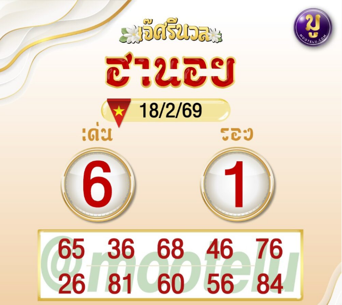 สำนักเจ๊ศรีนวลยังติดเลข 6 เช่นกัน! ส่วนเลขรองเป็น 1 ที่มีสถิติเด้งขึ้นมาในงวดก่อน ทำให้แนวทางทั้งสองตัวนี้มีน้ำหนักดีมาก