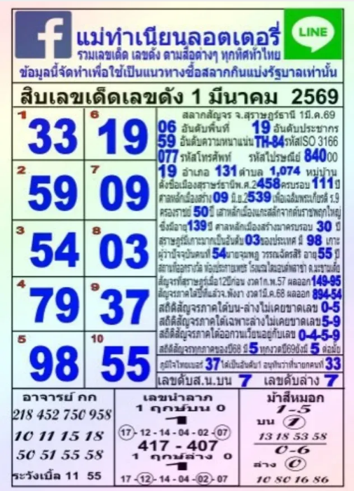 10 เลขเด็ดเลขดัง "แม่ทำเนียนลอตเตอรี่" งวดวันที่ 1 มีนาคม 69 มาแล้ว!..คอหวยอย่าพลาด!!