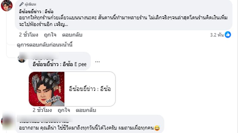 ซึ่งต่อมาทางเพจยังระบุในคอมเมนต์เพิ่มเติมอีกว่าอยากให้ทุกร้านก๋วยเตี๋ยวแบนนางนะคะ พฤติกรรมนี้ทำมาหลายร้าน ไม่เลิกจริงๆจนล่าสุดโดนร้านคิดเงินเพิ่ม จะไปฟ้องร้านอีก เจริญ ซึ่งคอมเมนต์จากโลกโซเชียลต่างเห็นไปในทิศทางเดียวกันที่อยากให้ทางลีน่าจังเลิกพฤติกรรมดังกล่าว และอยากให้ร้านก๋วยเตี๋ยวแบนลีน่าจังจนกว่าจะเลิกพฤติกรรมเช่นนี้
