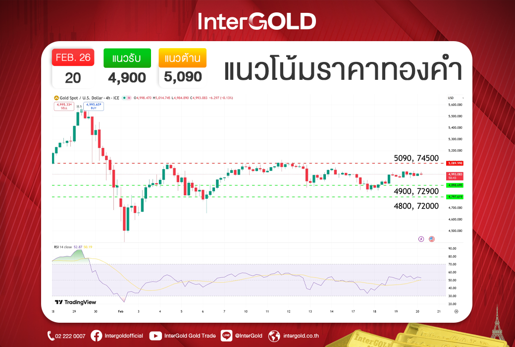 ที่มา : บทวิเคราะห์ราคาทองคำประจำวันที่ 20 กุมภาพันธ์ 2569 - InterGold