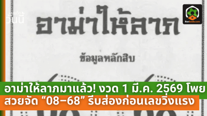 อาม่าให้ลาภมาแล้ว! งวด 1 มี.ค. 2569 โพยสวย “08–68” เด่นชัด รีบส่องก่อนเลขวิ่งแรง