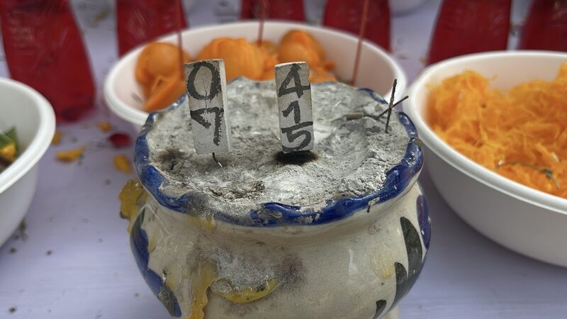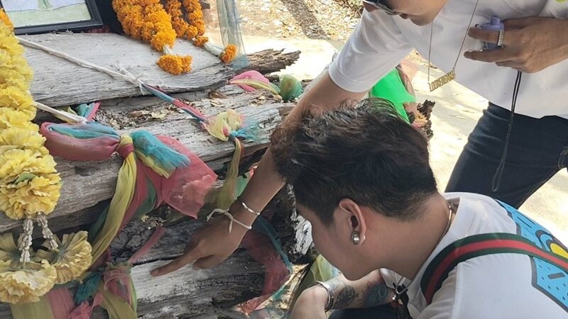 ขณะเดียวกัน น.ส.พรธิพา (ขอสงวนนามสกุล) ได้นำส้มและน้ำแดงมาแก้บน หลังจากถูกรางวัลใหญ่ในงวดที่ผ่านมา โดยก่อนหน้านี้เคยถวายชุดไทย 3 ชุด และได้โชคตามที่ขอไว้ จึงเดินทางกลับมาแก้บนอีกครั้ง
