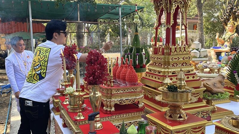 เจ้าของร้านอาหารทำพิธีบวงสรวง