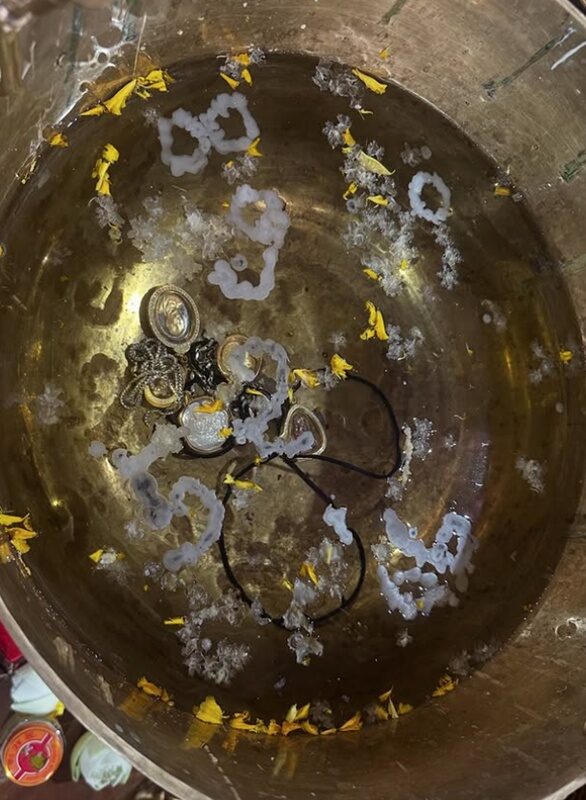 พร้อมทั้งยังเผยภาพ พิธีบวงสรวงและพลีมวลสารมงคล วัดสวนธรรมปีติ กาฬสินธุ์ โดยหลวงปู่ศิลา ก่อนจะโพสต์อีกภาพเปลวไฟร้อนแรงอยู่ข้างหน้า ขณะยืนไหว้ในระหว่างพิธี พร้อมเลขขันน้ำมนต์ภายในงานด้วย แจกโชคงวดนี้