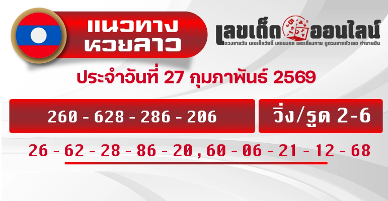 หวยลาวแนวทางหวยลาว 27/2/2569 เจาะสูตรหวยหาเลขเด็ดพารวยวันนี้ !