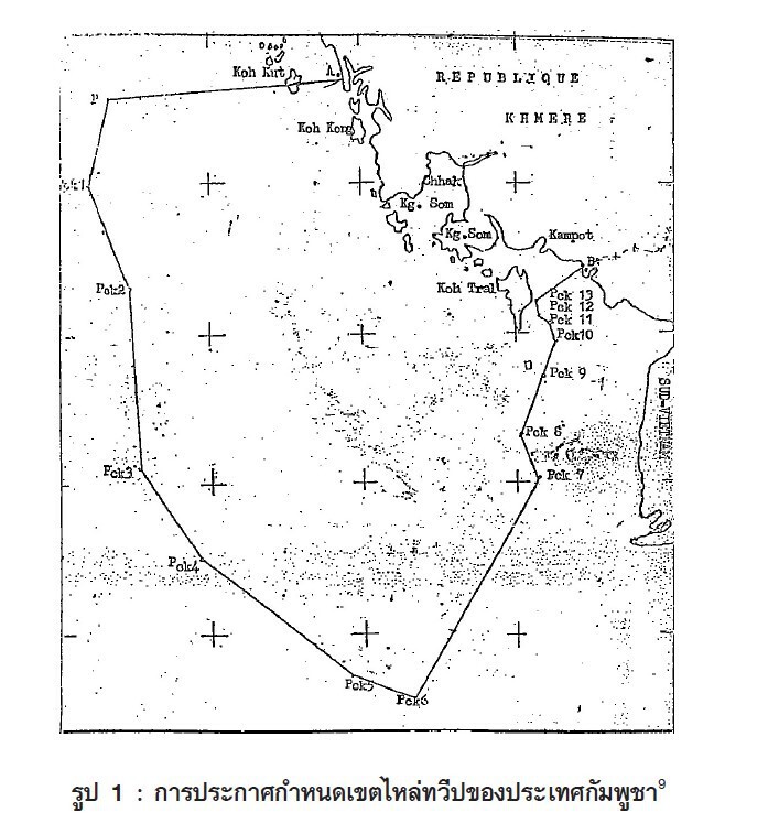 กัมพูชาประกาศเขตไหล่ทวีปฝ่ายเดียวครั้งแรกเมื่อวันที่ 6 กุมภาพันธ์ 2513 แต่ประเทศไทยไม่ยอมรับเนื่องจากไม่เป็นไปตามหลักกฎหมายระหว่างประเทศ ต่อมากัมพูชาได้ประกาศกฤษฎีกากำหนดเขตไหล่ทวีปอีกครั้งเมื่อวันที่ 1 กรกฎาคม 2515 โดยประธานาธิบดีลอนนอล ครอบคลุมพื้นที่ประมาณ 16,200 ตารางไมล์