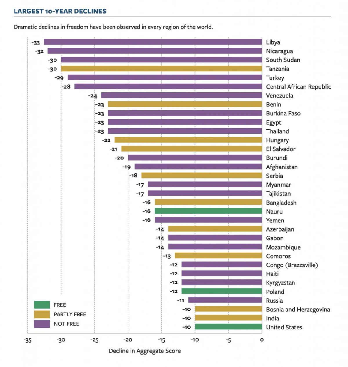 การถดถอยของประชาธิปไตยสหรัฐและผลกระทบต่อโลก