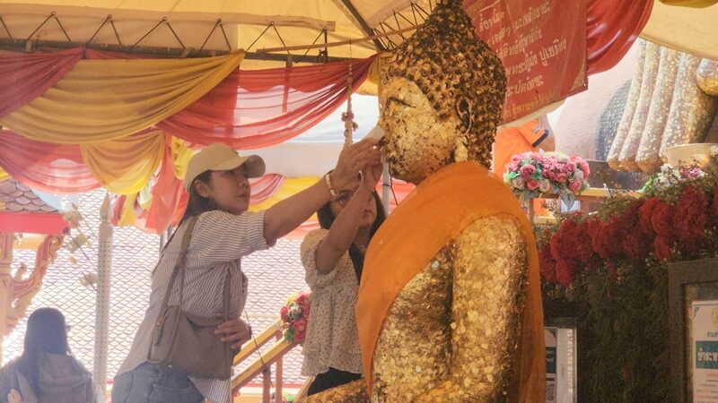 เมื่อเวลา 09.09 น. วันที่ 12 มี.ค.2569 ที่วัดกลางบางพระ ต.บางพระ อ.นครชัยศรี จ.นครปฐม บรรยากาศการแก้บนและสาธุชนที่เดินทางมากราบไหว้สิ่งศักดิ์สิทธิ์ภายในวัดกลางบางพระ