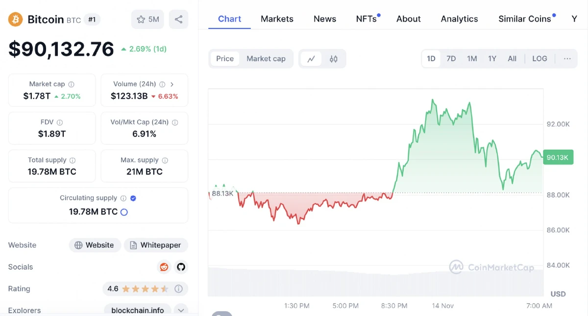 ราคาบิตคอยน์ (Bitcoin : BTC) วันนี้ (14 พ.ย.67) พุ่งแรงในช่วงค่ำคืนที่ผ่านมา โดยแตะระดับสูงสุดที่ 93,409 ดอลลาร์ บนเว็บไซต์คอยน์มาร์เก็ตแคป ก่อนที่จะกลับมาเคลื่อนไหวที่ระดับ 90,000 ดอลลาร์ ณ เวลา 7.30 น. ซึ่งถือเป็นการทำนิวไฮใหม่ครั้งที่ 4 หลังจากที่ "โดนัลด์ ทรัมป์" ชนะการเลือกตั้งเป็นประธานาธิบดีสหรัฐ สมัยที่ 2