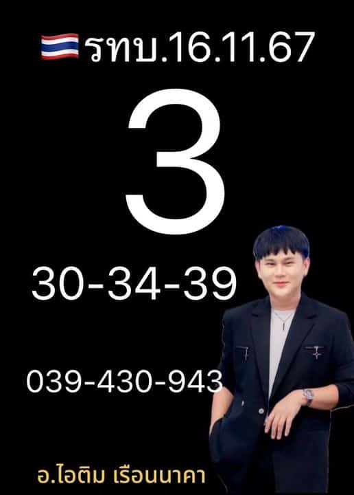 เลขเด็ด อ.ไอติม เรือนนาคา หวยรัฐบาลไทย งวด 16 พ.ย. 67 เลขเด่นไม่ซ้ำสำนักอื่น