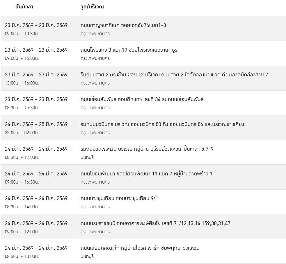 ที่มา : 23 มี.ค.69 กฟน.ประกาศ “ดับไฟ” 4 จุด กรุงเทพมหานคร เช็กด่วน!