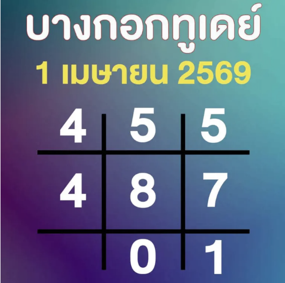 ตามต่อ เลขเด็ด บางกอกทูเดย์ หวยออกวันพุธ 1 เมษายน 2569 สรุปให้ 3 ตัว 2 ตัว เลขเด็ดงวดนี้ บางกอกทูเดย์ให้เลขอะไร 1 4 69
