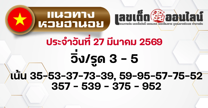 สรุป แนวทางหวยฮานอยวันนี้ 27/3/2569