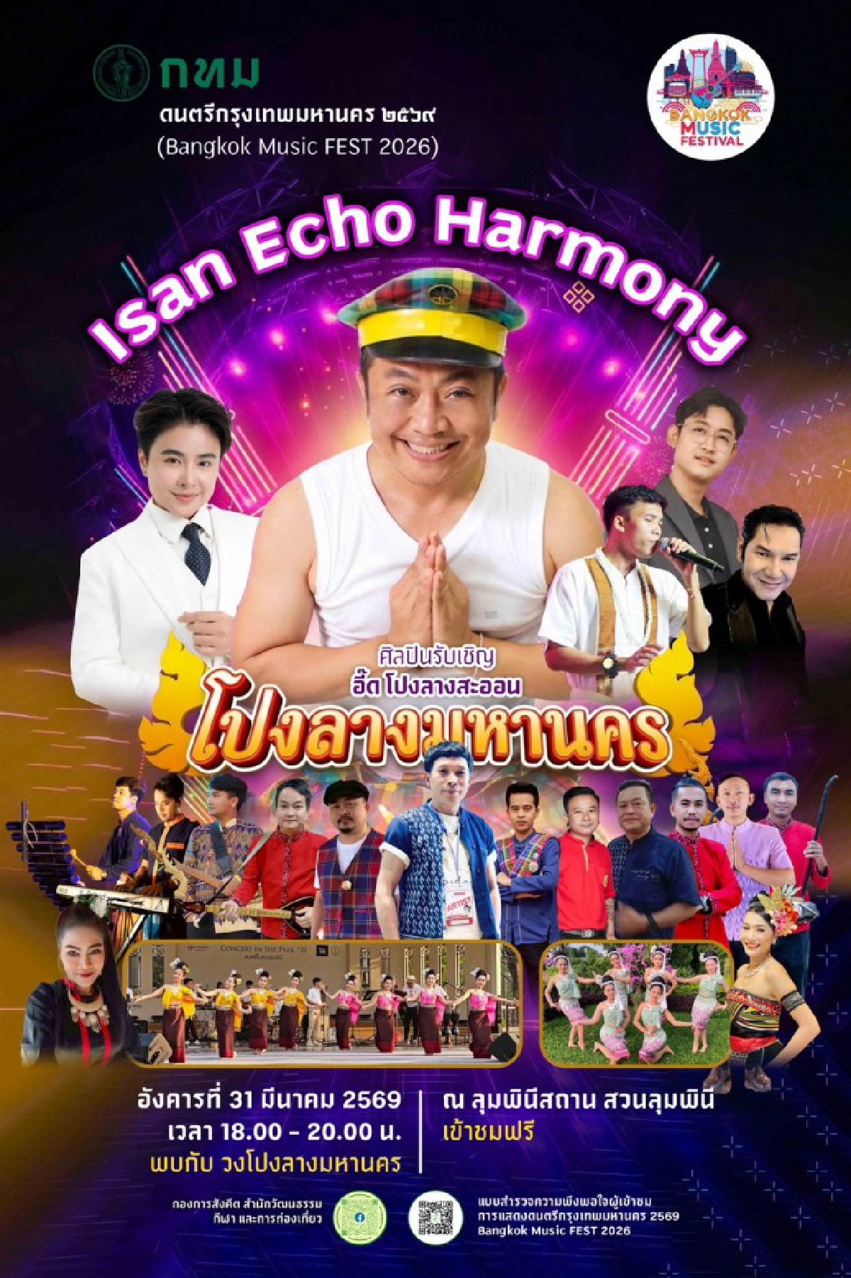 จัดเต็ม 7 วันรวด ดนตรีในสวน Bangkok Music Fest 2026 ขนทัพศิลปิน โรส ศิรินทิพย์-อี๊ด โปงลาง บุกสวนลุมฯ ดูฟรีตลอดงาน