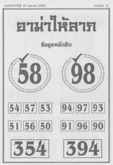 ที่มา : เลขเด็ด "อาม่าให้ลาภ" งวดวันที่ 16 เมษายน 69..รีบซื้อหวย รวยก่อนใคร!