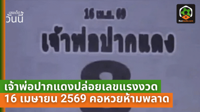เจ้าพ่อปากแดงปล่อยเลขแรงงวด 16 เมษายน 2569 คอหวยห้ามพลาด ส่อง เลขเด็ด ชุดเด่นก่อนเกลี้ยงแผง!