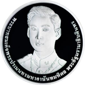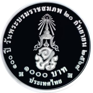 เงินร้อยละ 92.5 ชนิดราคา 1,000 บาท ขนาดเส้นผ่าศูนย์กลาง 35 มิลลิเมตร น้ำหนัก 22 กรัม จำหน่ายราคาเหรียญละ 3,000 บาท (ผลิตไม่เกิน 5,000 เหรียญ)