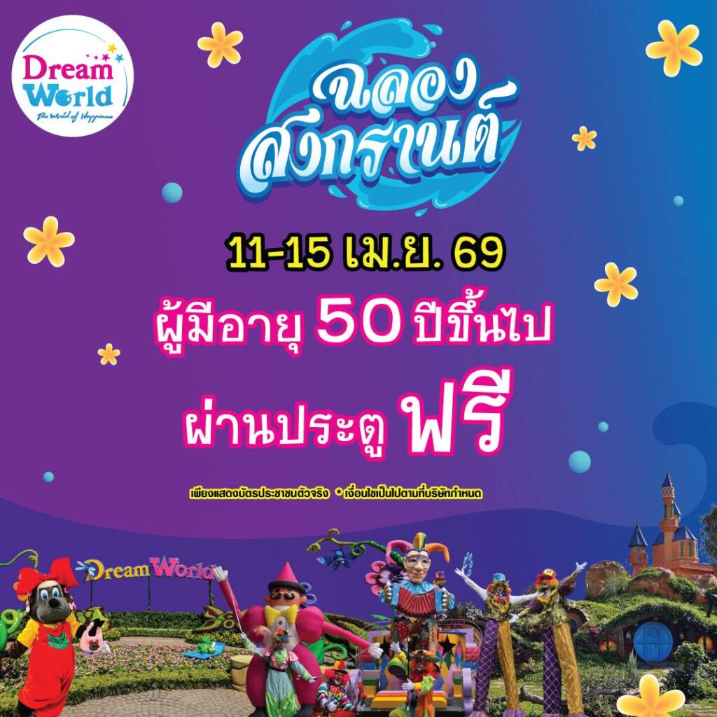 ที่มา : สงกรานต์ 2569 ดรีมเวิลด์ชวนเที่ยว อายุ 50 ปีขึ้นไป ผ่านประตูฟรี
