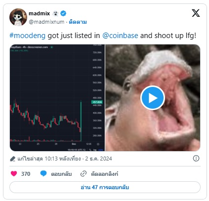 ที่มา :Coinbase Effect มาแรง! Moodeng พุ่งเกือบแตะจุดสูงสุดใหม่